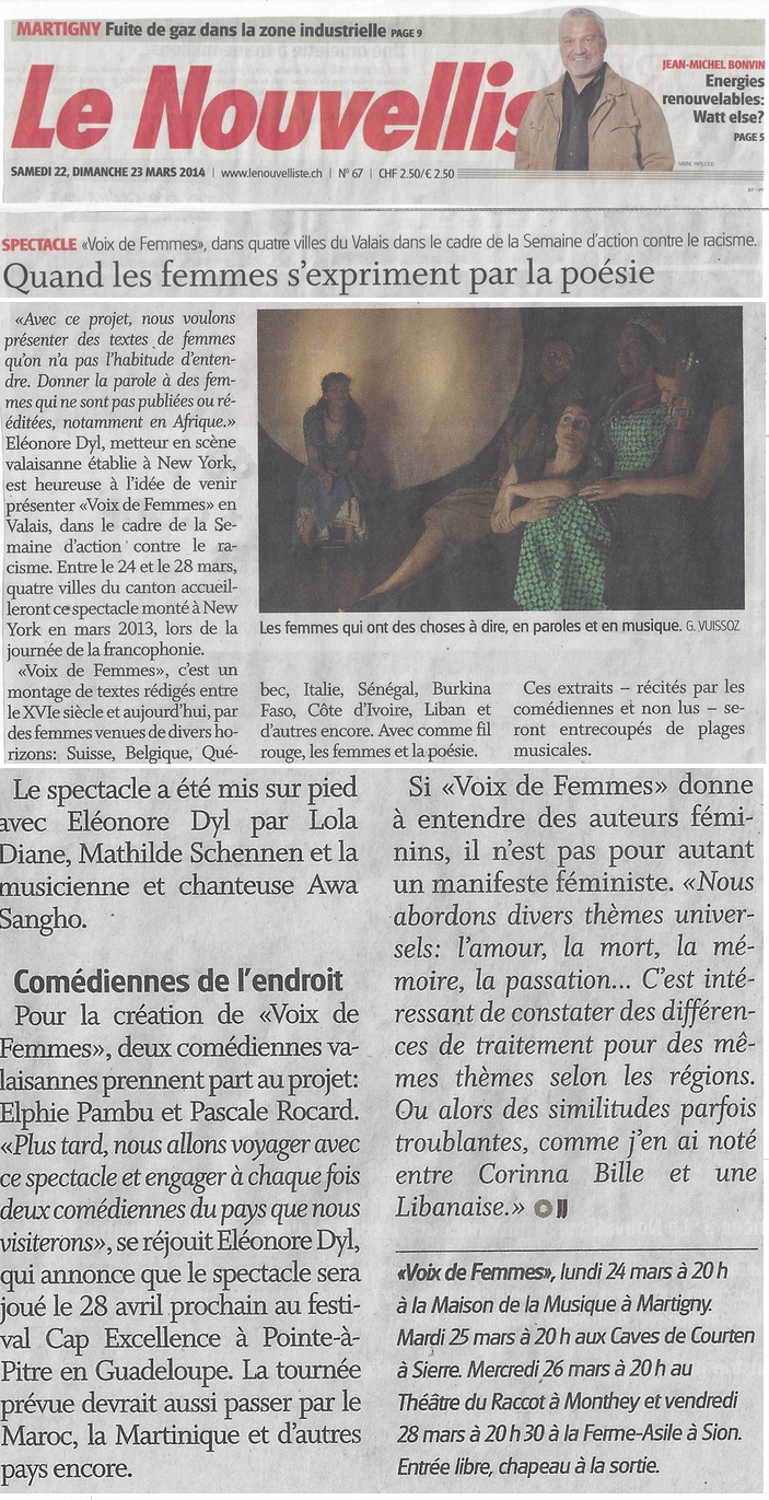 Article: 2014- Voix de Femmes- Pour LE NOUVELLISTE