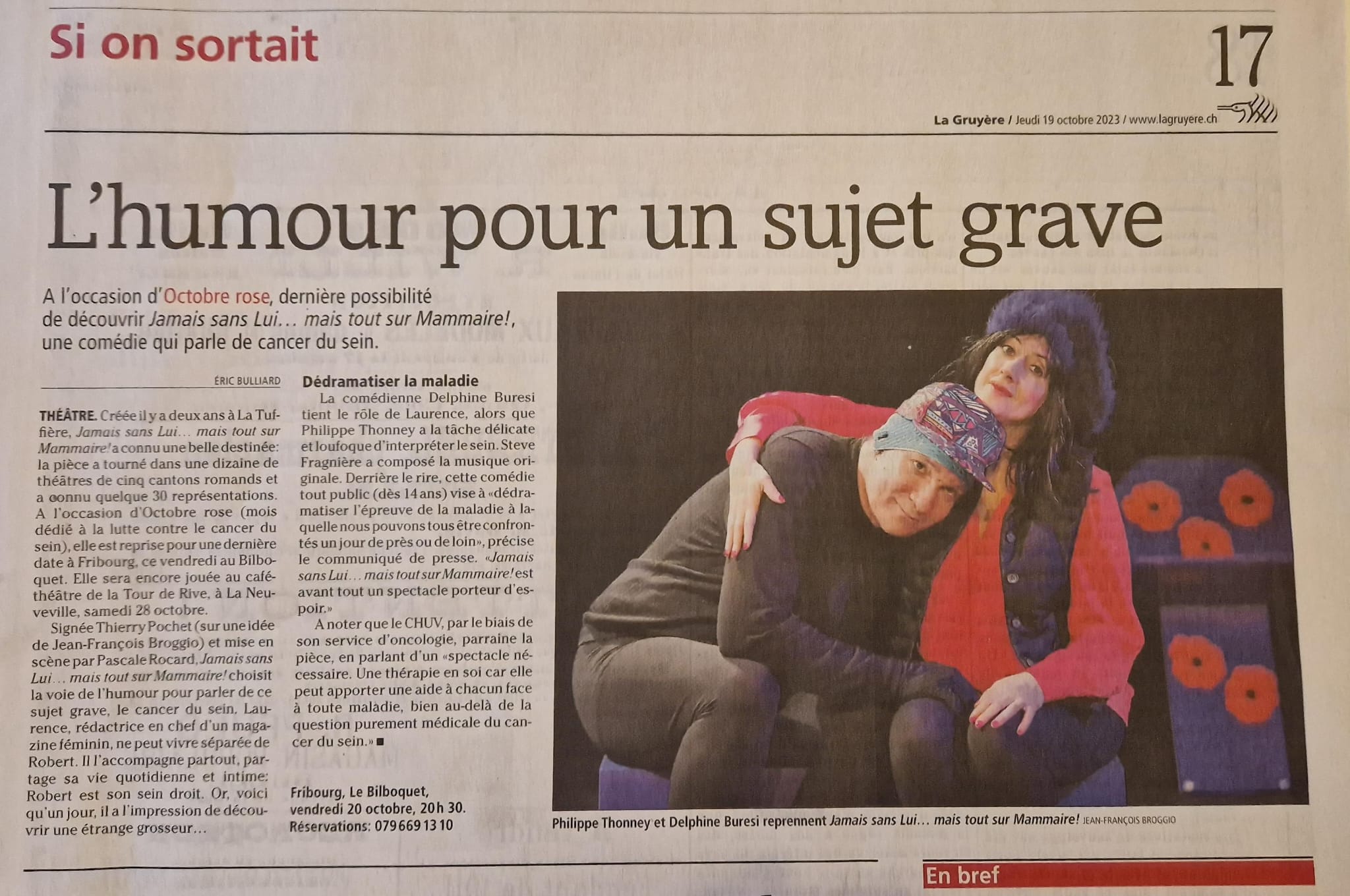 2023-09-10 "Jamais sans Lui " Presse écrite LA GRUYERE.ch
